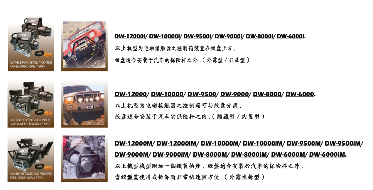 汽車絞盤主要用于越野汽車、農用汽車、ATV運動車、艇游、以及其它特別車輛,是車輛、船只自我保護及牽引的裝置??稍谘┑?、沼澤、沙漠、海灘、泥濘山路等惡劣環(huán)境中進行車輛自救,并可能在其它條件下,進行清障、拖拉物品、安裝設施等作業(yè),是軍警、石油、水文、環(huán)保、林業(yè)、交通、公安、邊防、消防及其它野外運動不可缺少的安全裝置。