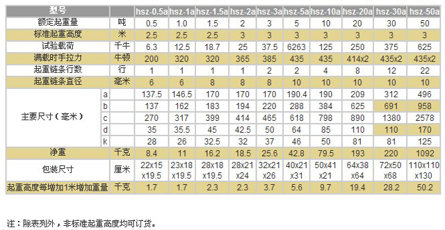 東洋手拉葫蘆參數(shù):