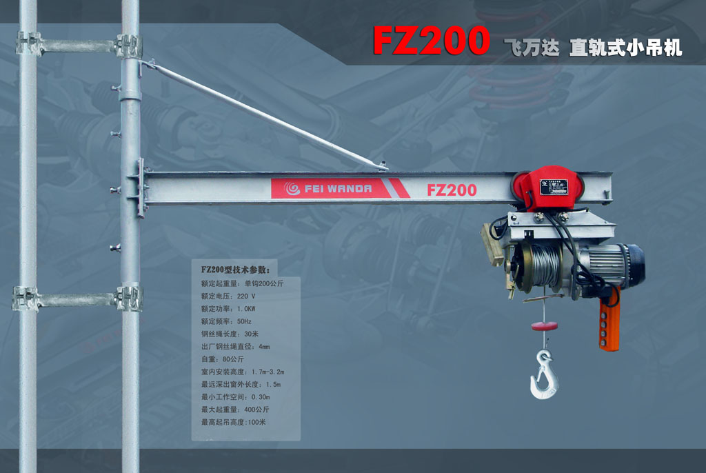 直軌式小吊機(jī)產(chǎn)品介紹: 優(yōu)勢1:臂長是其它小吊機(jī)的3倍 優(yōu)勢2:可在30厘米的小窗戶內(nèi)使用 優(yōu)勢3:航空專用機(jī)重量輕起重大